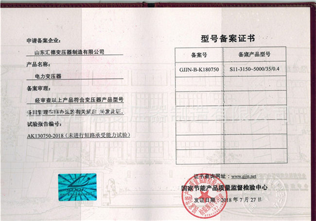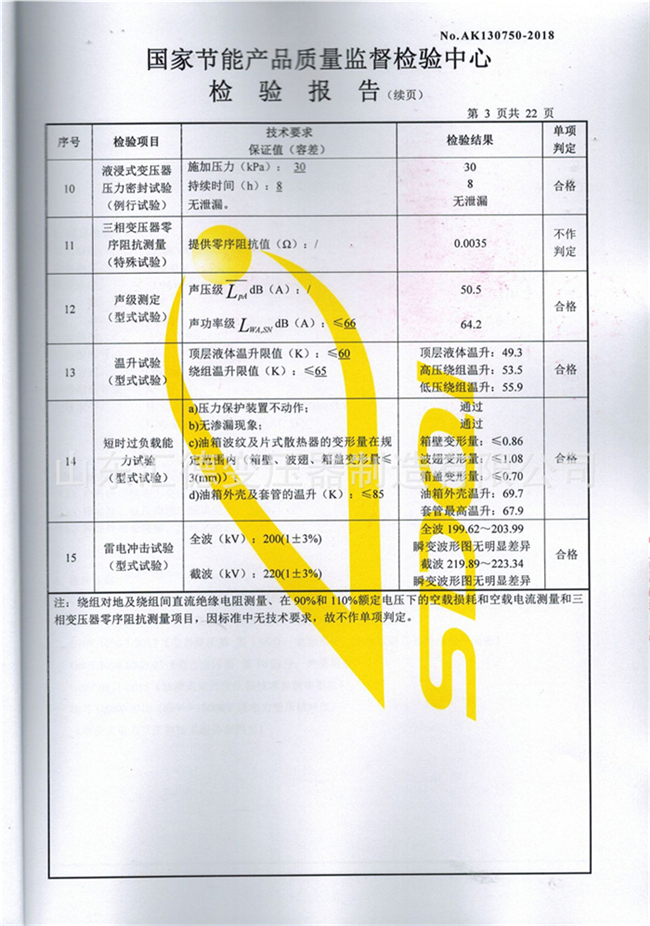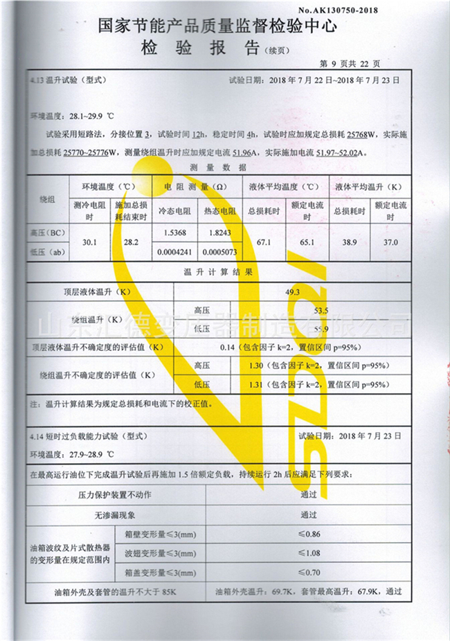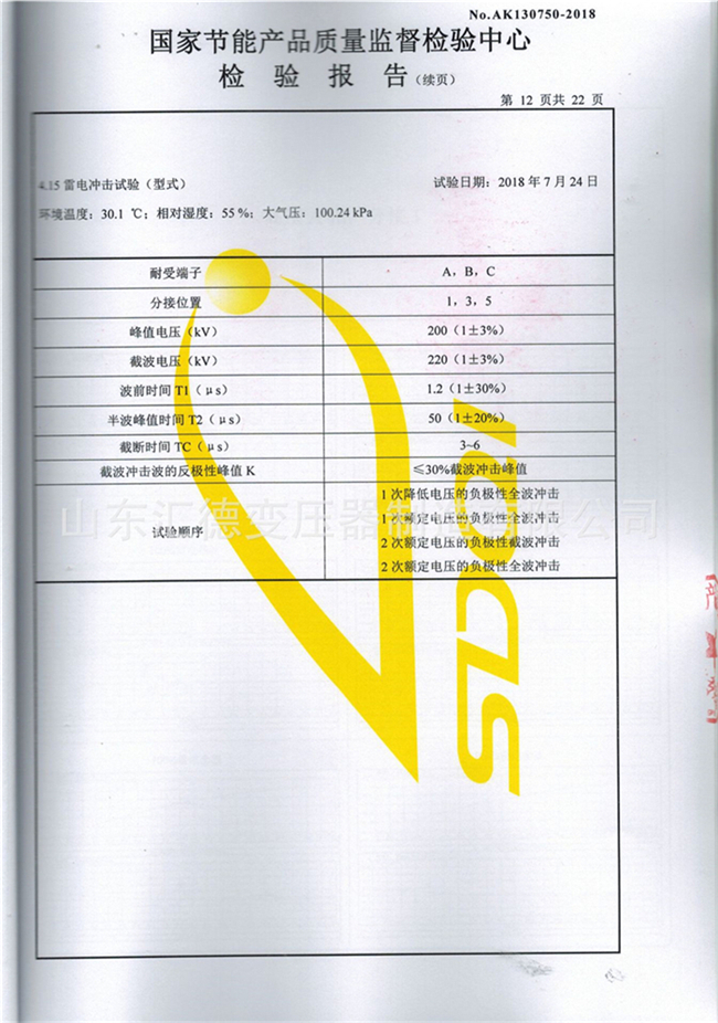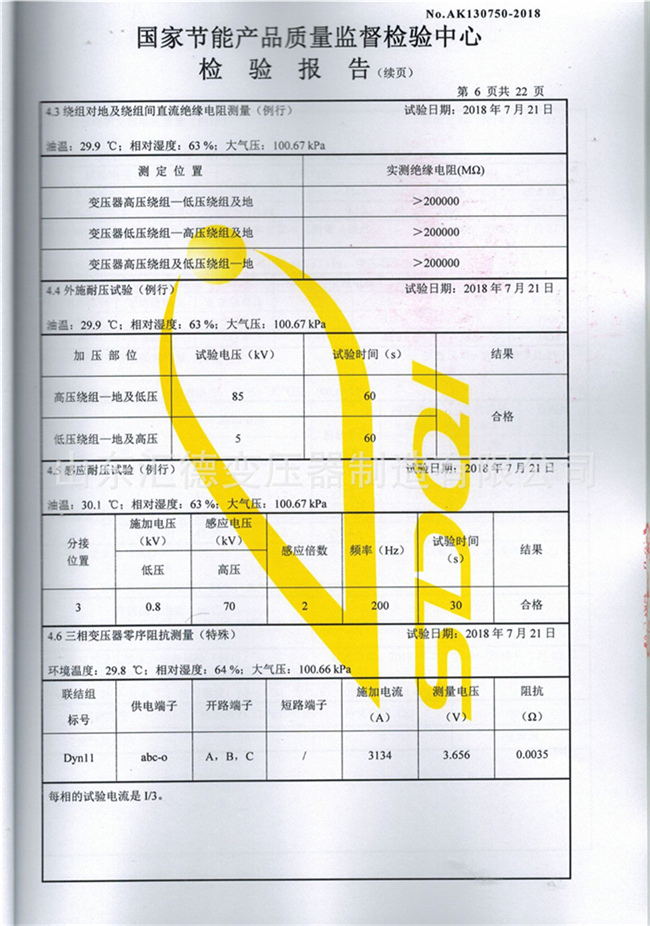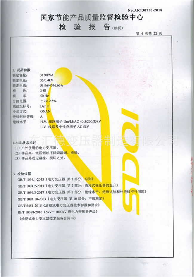 簡(jiǎn)介: 高低壓型式試驗(yàn)報(bào)告S11-3150/35/0.4電力變壓器(全套資質(zhì))--山東匯德變壓器制造有限公司